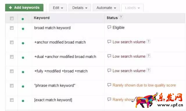 3、Exactmatch-精準(zhǔn)匹配:搜索詞條必須和關(guān)鍵字完全一致,廣告才會展示。如果廣泛匹配的轉(zhuǎn)化率高于短語匹配和精準(zhǔn)匹配,那說明你的賬號中沒有與搜索詞相對應(yīng)的關(guān)鍵字,你可以下載報告,將它們添加進(jìn)去。
