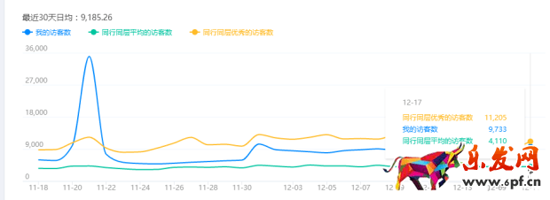 有兩個明顯高峰 ,雙11和雙12,但是大家注意下,之前都是5000左右的uv,但是最近突然爆發到一萬左右。