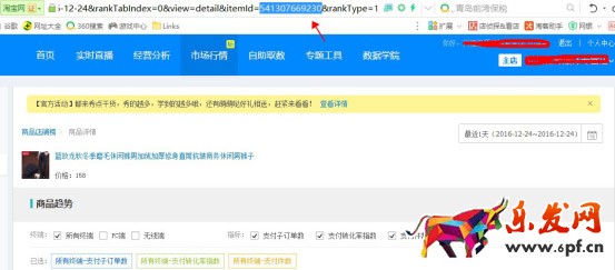 2、然后進入行業顆度選擇對應的類目后隨便選擇一個寶貝點擊查看詳情,把寶貝id換成競爭對手的寶貝id,復制鏈接然后粘貼到瀏覽器打開就可以看到競爭對手的數據了哦!