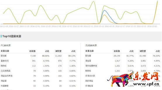 下面就是寶貝流量來源top10排名渠道,根據曲線圖看到的上漲或者下滑,我們就可以選擇這些數據變化比較大的日期進行查看,分析對手在哪個渠道作了優化,做了這些渠道的優化后多長時間起到什么樣的效果,都是可以直觀的分析出來。