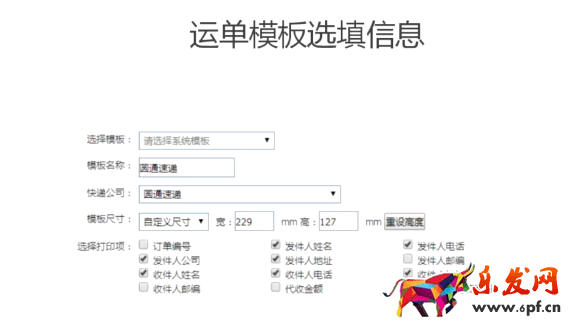 這里的模板的選擇根據賣家的實際情況進行選擇,當選擇完快遞公司后會產生模板尺寸,在選擇打印項時要注意地址和電話是必不可少的。當填寫完信息后系統會自動跳出來一個模板,為避免打單出錯,可以手動進行調節,若系統尺寸和所拿面單不一致時可以向當地網點進行索要。