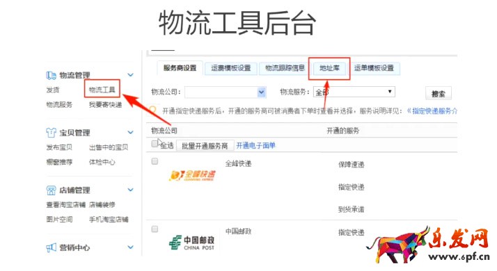 設置物流工具是發貨的的基礎,并且設置好物流能增加地域標簽,只有設置好物流工具后臺,我們的產品才能優先地推薦到買家的面前。下面我們具體看看如何進行地址庫設置,首先打開物流工具后臺,點擊地址庫,進入地址庫的正確設置。