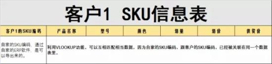 這里面東哥是用二級調用,先借用自己家的sku編碼來調用客戶1的sku編碼,再由客戶1的sku編碼調出產品信息。