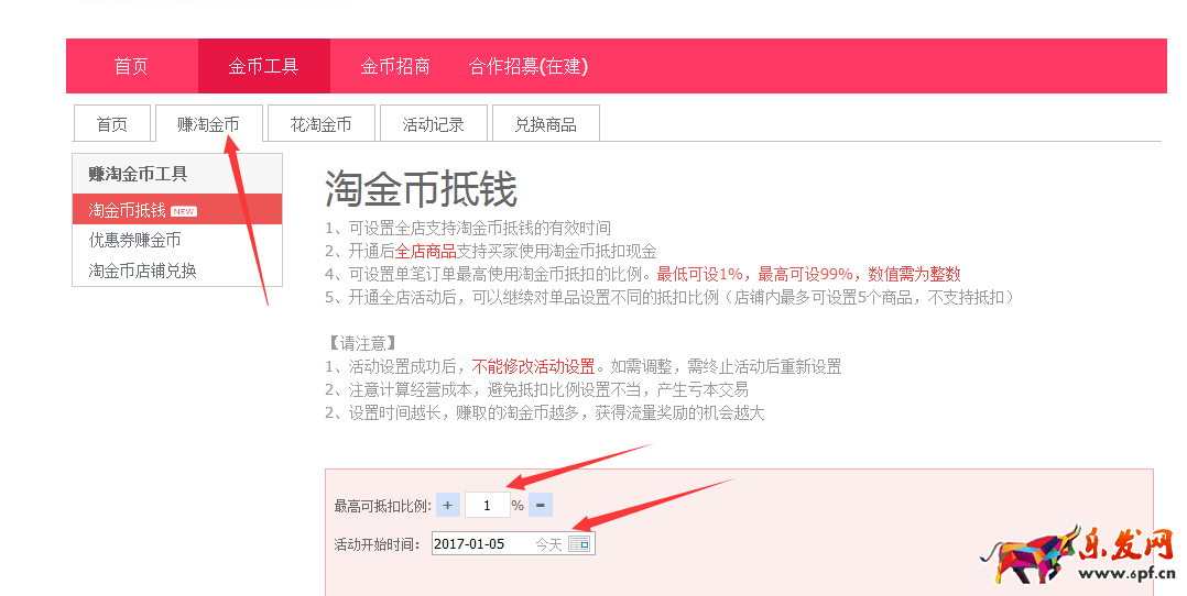 2、點(diǎn)擊立即運(yùn)行活動(dòng),最高可抵扣比例是1%,活動(dòng)開始日期設(shè)置成為今天-長(zhǎng)期