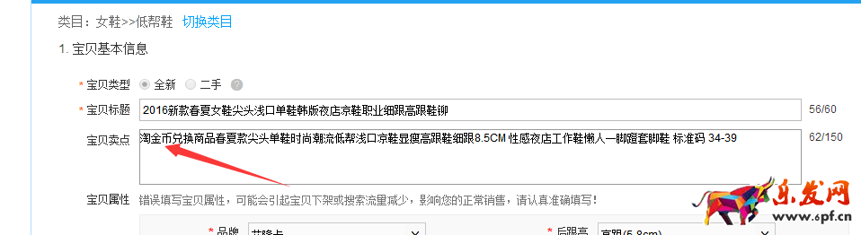6、在寶貝的賣點(diǎn)和標(biāo)題里面添加淘金幣抵錢這樣的字眼,具體添加什么,還是要用生意參謀具體的分析下,如下圖: