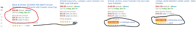 很多賣家都已經(jīng)知道,消費(fèi)者評價(jià)的數(shù)量和積極性是A9算法里重要的排名因素之一。舉個(gè)例子,如下圖所示,排名第一的BISSEL吸塵器有最多評價(jià),評分最高,是熱銷品,因此排在第一。第二名的Dirt Devil評價(jià)更多,評分稍低,同樣也是熱銷品,所以排在第二。而第三的Shark Navigator雖然評分比第二高,但是數(shù)量更少,一樣是熱銷品,所以排在第三。第四的Hoover WindTunnel雖然評價(jià)比前三都多,但是評分比第一、三低,而且不是熱銷品,所以排在第四: