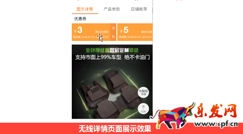 除了在無線端首頁可以顯示優惠券以外還要在店鋪的詳情頁展示店鋪優惠券,因為消費進入無線端后的第一個頁面是詳情頁,然后二次跳轉才是店鋪的首頁,如果能在無線端的詳情頁增加優惠券的話,領取的效果會更加好。
