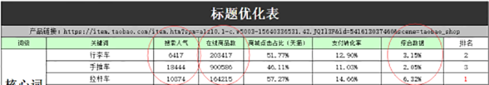 找出這里數據比較好的關鍵詞,什么樣的數據才叫好呢?搜索人氣高的嗎?(搜索人氣類似我們的搜索量)這里當然不是,我們的數據不能只參考一種,而是多種數據同事考慮,這樣的數據才具有參考性,什么意思呢?就是我們在看數據的時候不能只看搜索人氣,還要看競爭。這里給大家提醒下我們做標題的三個原則問題(搜索、相關性、競爭)這個大家要牢記,這才是做標題的精髓。所以我們現在找的詞具備了相關性、搜索還差得就是競爭了!這個時候一張表格就可以搞定!像這樣的。