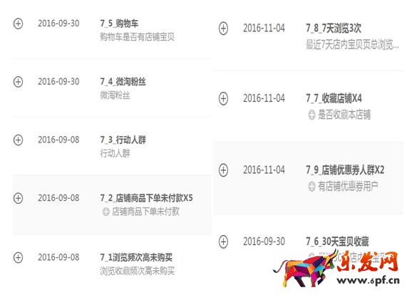 老客營銷:通過投放自家店鋪人群和DMP進行標簽化人群的圈定投放。既然是維護老客,可以通過用戶軌跡下的瀏覽痕跡進行精準的老客區分。這樣篩選出來的人群針對性比較強。例如,下面是一些常用的DMP標簽: