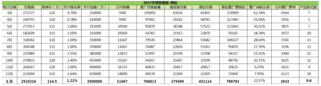 (1)制定好銷售預估數據之后,根據每個月的銷售目標以及策劃的推廣活動將推廣費用分配到各個推廣渠道上。