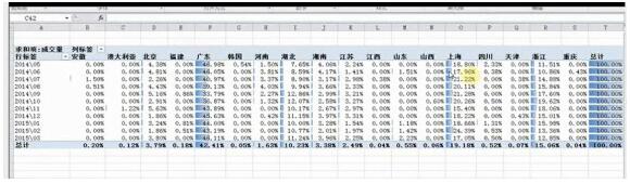再看一看上圖呈現的面膜類產品成交量,通過上表百分比,大家可以看到現在做面膜主要的成交地區在廣東、上海、浙江。如果你在廣東地區做這一塊就比較容易,但是如果在江浙滬地區呢,覺得自己打的贏廣東地區的人嗎?那就很難說了。所以今天做淘寶就和以前行軍作戰一樣講求天時地利人和。如果想要鞏固穩定店鋪的收入,一定要記得先占地利,因為快遞運送有快慢,現在淘寶買家都比較浮躁,當天下單之后第二天可能就要問你發貨了沒有快遞到哪了,所以很講究這個時銷,才能提高店鋪轉化率。那么一開始就要確定我們的對手我們的目標到底在哪個區域。