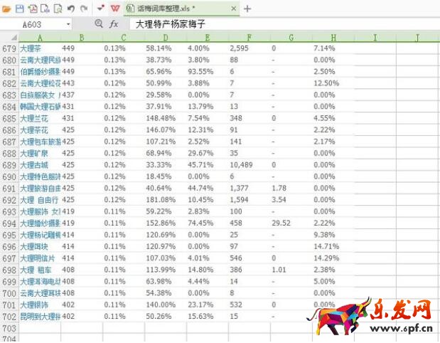 如上圖,我做的是大理特產的關鍵詞庫,這里我用了一個“大理”關鍵詞。