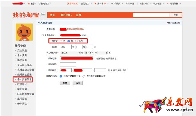 2、申請渠道時顯示性別錯誤,請確認旺旺綁定的支付寶實名認證是否為女性,并且在淘寶和支付寶的個人資料中將性別狀態(tài)改為女性且公開。