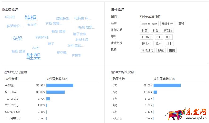 從數據上看搜索人群女士為主,年齡集中在26-30歲左右,年齡上推斷基本上是公司白領。預估一般是女的先看款式和價格,覺得好的加購物車或收藏,晚上回去再和男的商量。下單時間段從早上9點開始基本比較穩定中間17:00-19:00下滑,估計是下班的路上聽音樂和看帥哥去了,沒空淘寶。復購率不高,95%都是一錘子買賣.大部分買家集中在比較發達的城市,說明兜兜里有米才是硬道理哦。