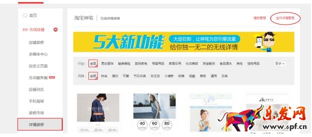來(lái)到我們裝修無(wú)線端詳情的頁(yè)面(wuxian.taobao.com),在無(wú)線運(yùn)營(yíng)中心里面找到詳情裝修,點(diǎn)擊詳情裝修后,在右邊找到寶貝詳情管理。