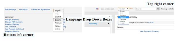 為了進一步增加賣家的語言切換體驗,亞馬遜將語言轉換框放在搜索框的前面,位于亞馬遜賣家中心頁面的右上角。
