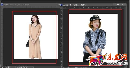 地方,使圖片成圖這樣,沒有被框到的就點左上角箭頭往里拉一點會自己貼在模特身上。然后按快捷鍵ctrl+shift+I反向選擇圖片。這個時候就可以點擊左上角的移動工具,長按反向選擇的模特,拖到已創建好的圖層里面。通過快捷ctrl+T對模特進行變形,放入白色背景就完成了對圖片的制作了,稍后我們發下做好的白底圖片。