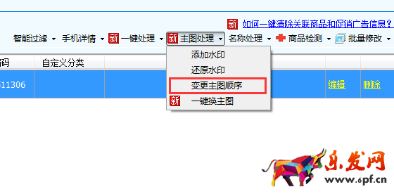 2.變更主圖順序,在淘寶我們會看到很多產品在點擊找同款的時候都能出現很多一模一樣的產品,能被找出來很多時候就是因為第一張主圖都一模一樣,如果你不想被客戶審美疲勞,你可以選擇變更主圖順序,這邊可以批量變更。