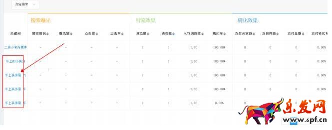 就像這個產品的關鍵詞數據一樣,能夠看到當天基本上就以“車上裝飾品”延伸的關鍵詞帶來的流量,所以可以判斷出這個產品目前流量比較大的就是“車上裝飾品”,所以后面的直通車就可以直接用這個去延伸選詞。