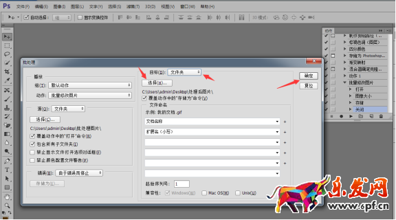 如果你需要把處理過的圖片保存在另外一個文件夾,可以在目標這里選擇文件夾,再點擊選擇按鈕,選擇要保存的文件夾,最后點擊確定,批處理就開始了。