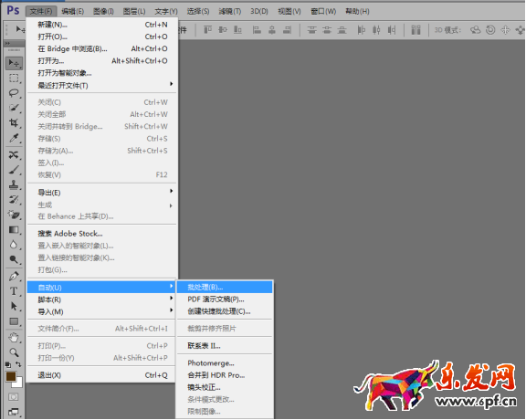 現在可以正式進行批量操作啦,選擇文件菜單下的自動-批處理工具