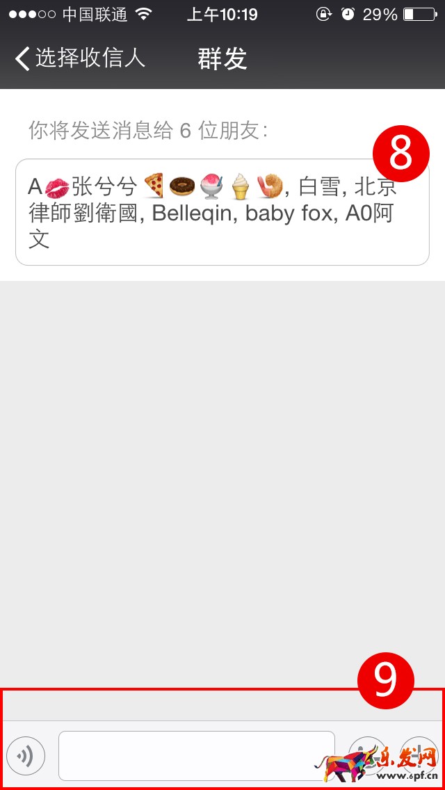 Y X*Sz!v `S03.如果是首次進(jìn)入群發(fā)助手,則選擇“新建群發(fā)”。選擇好要發(fā)送的對(duì)象后,再選擇好友里面可以“單個(gè)選擇”也可以“全選”