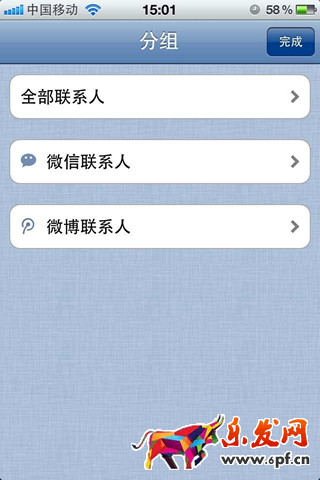 1、通訊錄里增加了微博聯(lián)系人,通訊錄分組中會多出一個“微博聯(lián)系人”分組。