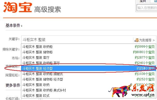 第二步在淘寶首頁打開商品分類,里面有高級搜索,打開高級搜索,輸入斗柜實木。我們可以看到有8.9萬的寶貝,也就是8.9萬的競爭。