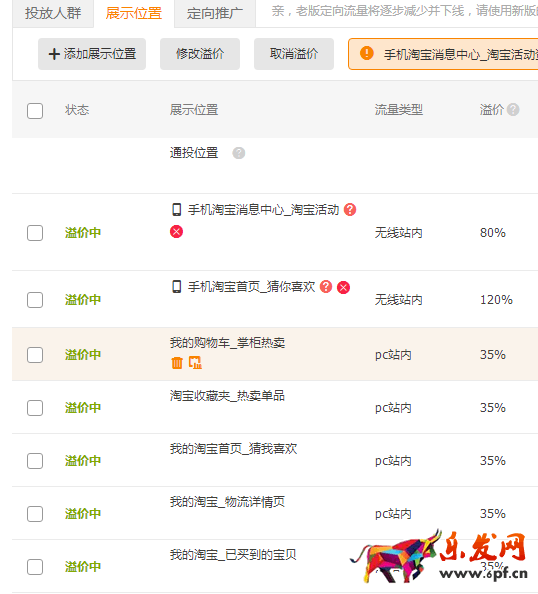2.購物意圖定向,因為前期直通車會給一些定向,可以直接都設置溢價,根據后期的反饋去調整,有時候系統推薦的那些不一定精準,所以自己人為去篩選下就好,因為搜索定向這個功能主要是讓直通車系統幫你統計、分析、計算、給你精確的人群標簽和搜索定向,當然需要一定的數據積累才能做出準確判斷,前期優化一段時間后,搜索定向這個功能會發揮很大的作用,爆發速度會更快。