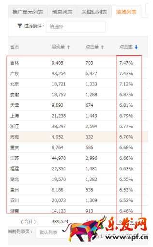 B.地域:通過直通車報表,對地域進行優化,將低投產的地域關閉,重點投放高點擊率的地域。根據自己產品利潤以及行業來確定自己產品投入產出比的合理性。