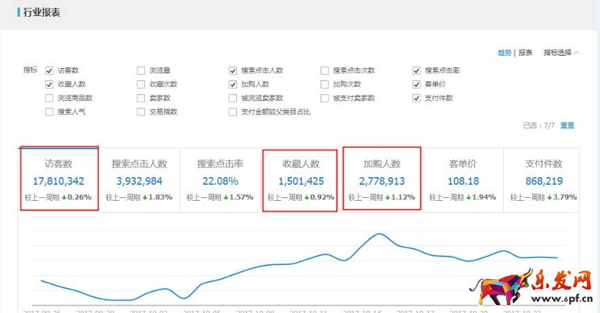 加車率和收藏率多少可以推呢?如上圖,我們進入到生意參謀—市場—行業大盤—行業報表中查看數據,當我們的加購率、收藏率達到行業加購率、收藏率的一半左右時(大部分時候會低一點),寶貝是可以推的。