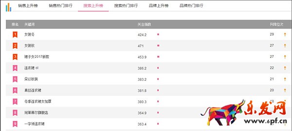 2、淘寶排行榜:在這里可以參考上升比較快和熱搜關(guān)鍵詞;
