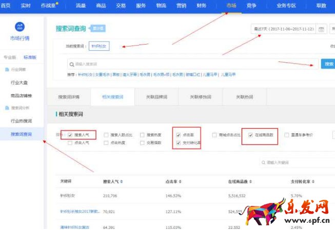 既然這樣的關鍵詞能給賣家帶來更大的收獲,就要用起來。怎么找到這樣的詞呢?可以通過生意參謀-搜索詞查詢中找。