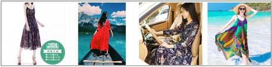 搜索“連衣裙波西米亞風”,你要注意,這里面的需求利益點在“波西米亞風”這個關鍵詞上。買這個裙子的女生都有一種浪漫情懷,暢想的場景式:海邊、旅游,遮陽帽、長裙。所以,看這四張主圖,你有沒有覺得第四張圖的效果要更好呢,在促進點擊率這一層面上。因為消費者看到這張圖的時候,瞬間就被帶到了海邊,幻想著自己穿上這個長裙后,在海邊沙灘漫步的場景。