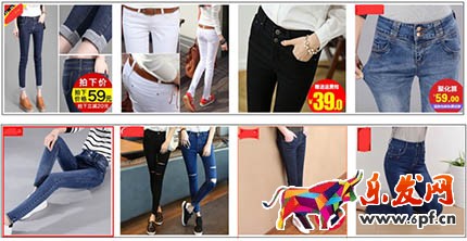 僅以“牛仔褲女 修身款”為例,這兩張圖中,你能否感覺到區別呢,比如上面圖中的第三和第四個,你覺得在點擊欲望層面,跟其他的比是不是要差一些?然后你看第二張圖的四個寶貝首圖,是不是要比第一張圖四個寶貝的首圖都要好一些呢?在拍攝的時候,不管是通過模特的姿勢,還是通過角度,都盡量的把“大長腿”體現出來,比如你可以讓模特坐著,可以遠距離拍攝,可以只拍攝大腿等等。