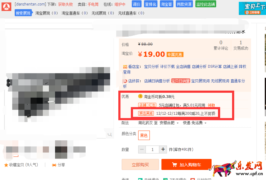 為了增加圖片點擊率,可以通過服務軟件透出活動的優惠信息,這里優惠幅度、創意的大小,決定了點擊率的高低。為什么要用水印工具呢?因為換主圖會影響權重,可以通過不改主圖而去選擇加水印的方式,更符合我們的需求。這里可以通過服務軟件進行水印的添加,比如“超級店長”、“361水印”等等。