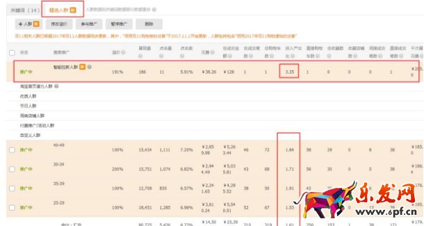 精準人群高溢價,那么我們的關鍵詞會優先展現在這部分人群中,然而這部分人群的轉化很高,那么也就能提高ROI了。