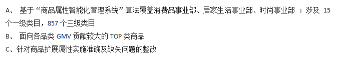 本期重點整改商品擴展屬性掛靠健康度,通過語義及圖像識別技術針對在柜商品屬性錯誤或缺失意見推送至商家后臺來更新;