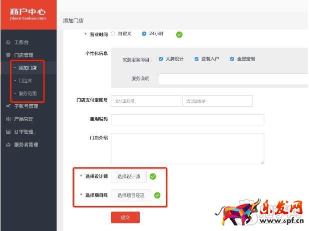 (4)須綁定實體店鋪地址,且在添加和管理門店的時候,提前給每個門店綁定好服務角色(設計師、項目經理)。