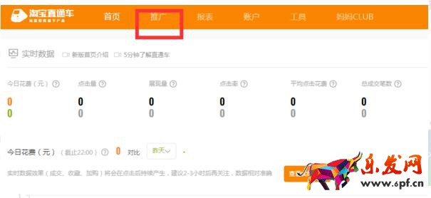 7、打開直通車后,點擊“推廣”選項