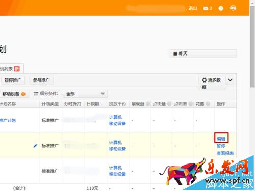 5、在【標(biāo)準(zhǔn)推廣】頁面上會顯示你已經(jīng)創(chuàng)建的活動,點擊你要設(shè)置的活動的編輯。