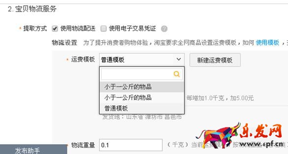 在下面是填寫物流信息,運費模板可以自己新建,也可以用默認的普通模板。