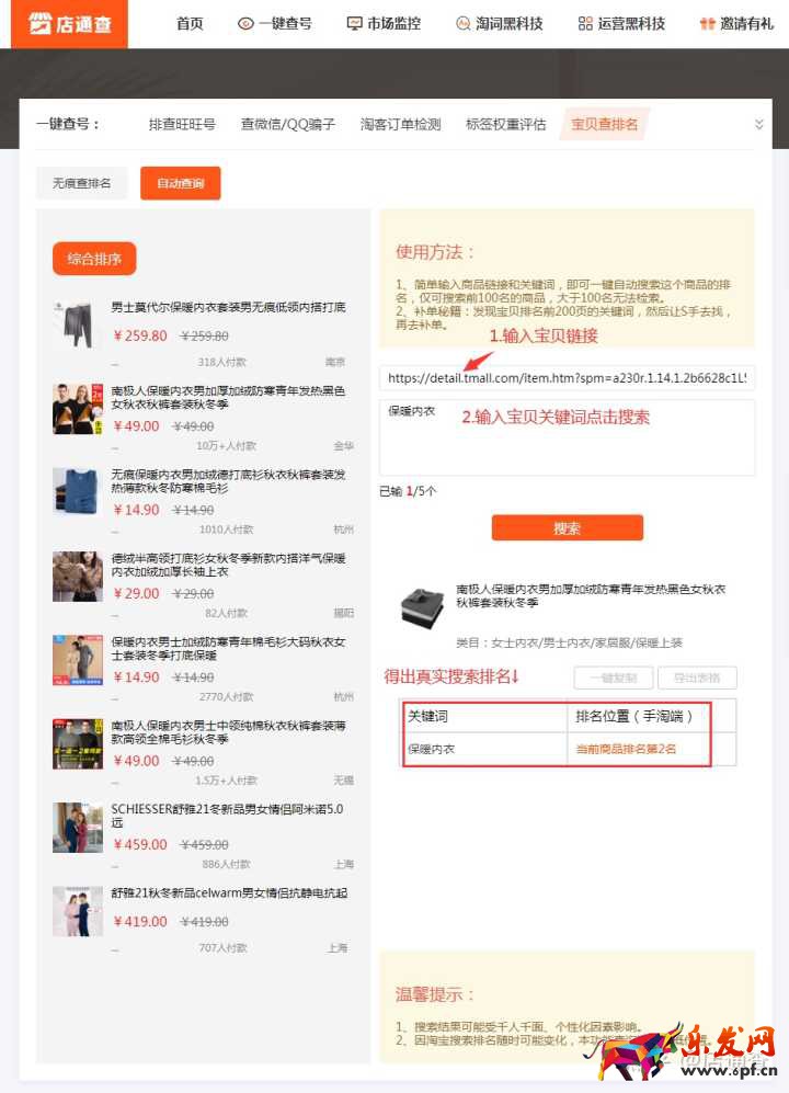 查寶貝排名:無視淘寶千人千面搜索機制,快速定位寶貝排名/關鍵詞排名,無痕搜索無需顧慮影響轉化問題,參照綜合排序可合理定制店鋪上升計劃,以及參考高位競品的關鍵詞標題進行優(yōu)化。