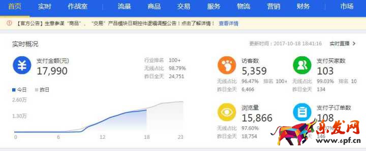 在生意參謀中的經營概況中,我們可以看到網店的訪客數,瀏覽量,支付金額,支付轉化率,客單價,退款金額和服務態度評分等數據。