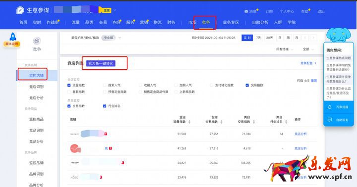 競爭情報是我們做淘寶/天貓的商家,用來分析競爭對手店鋪的工具。