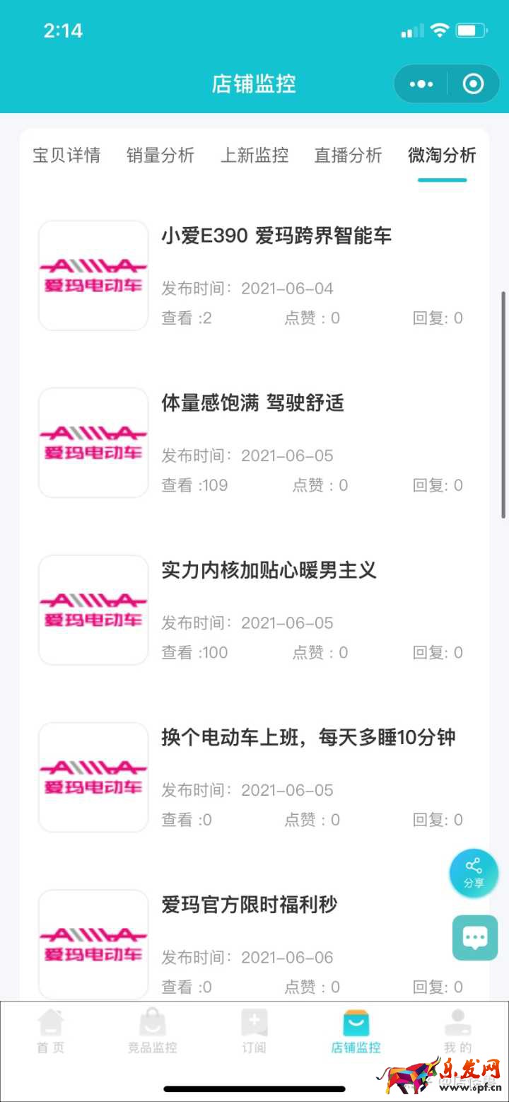 微淘分析,這個就可以分析店鋪的最新微淘發布情況,如果你也在做微淘的內容營銷,可以根據這個數據追蹤對手發微淘的數據。