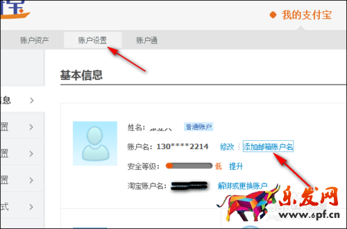 這時我們再回到那個要添加郵箱賬戶名的支付寶,在“賬戶設置里”點“添加郵箱賬戶名”