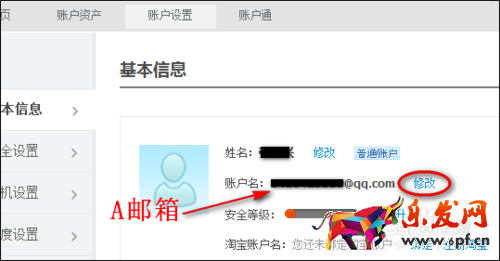 登錄進去之后,點導航欄上的“賬戶設置”,再把現用“A郵箱”賬號修改掉