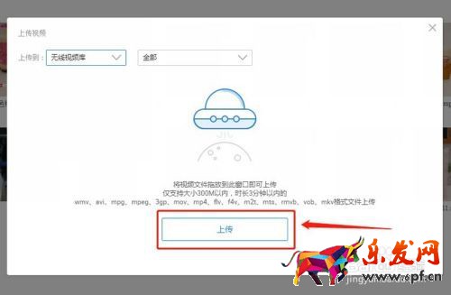 5、在跳出來(lái)的上傳對(duì)話框中點(diǎn)擊【上傳】。
