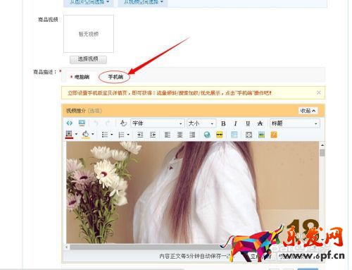 3、在商品描述里面有個 手機端,點擊就進入手機端編輯 (備注①)